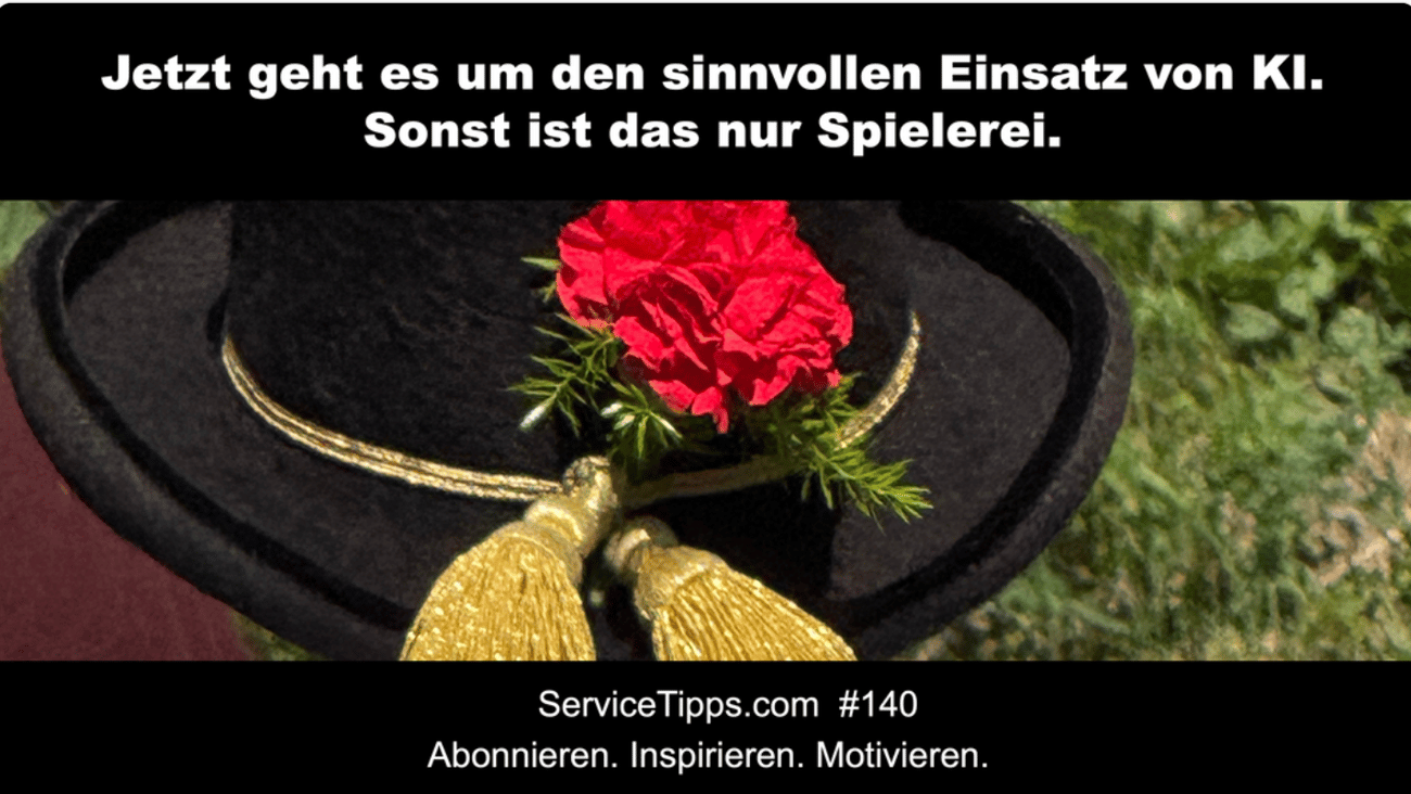 Für die Unternehmensführung gleich wichtig wie die KI ist jedoch, dass dem ganzen Team eine Richtung und gute Orientierung geboten wird. Motivation, Kultur und Service Excellence kann nur erwartet werden, wenn man darüber redet... >klick
